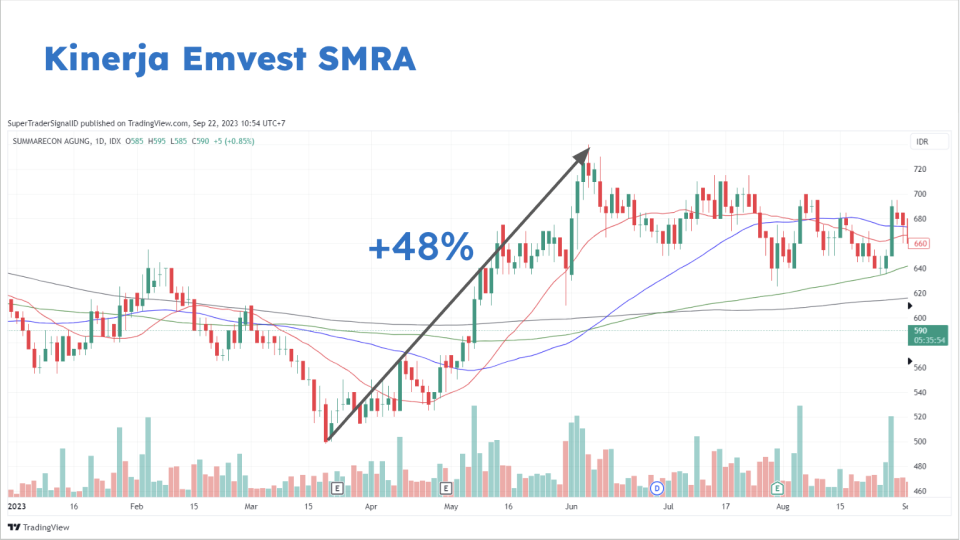 Dari level terendah Rp498 sejak 20 Maret 2023 hingga level tertinggi Rp740 sejak studi kasus pada 9 Januari 2023.